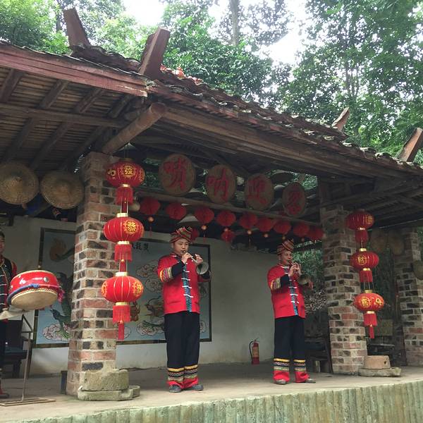 整个景区的游览时间大约需要两个小时。分为两个部分,第一部分是室外景区,通过景区人员向我们展示壮族各种文化,第二个部分是溶洞景区,走近溶洞感受喀斯特溶洞的鬼斧神工。唢呐迎客,听着欢快的唢呐声,我走近了景区。欢快的乐曲,也展示着壮族人民的热情好客。参观景区中,以前壮族人民生产和劳作使用的工具。真的的发觉以前,我们的祖辈都是那么聪明,可以想到那么多省时省力的方法来劳作。越发感觉现在科技进步,人们却变的懒惰了。唱山歌,壮族的山歌是出了名的。刘三姐的大名,我想全中国无人不知无人不晓,山歌好比那春江水。景区内有很多需要游客参与和互动的小游戏,很不错。增加了整个景区的趣味性和知识性。壮族人民,用他们的方式欢迎着来自五湖四海的人们。品一杯壮乡米酒,感受浓浓的壮族文化。景区内还设有很多有寓意的项目,很有趣味性。走近溶洞,感受着喀斯特溶洞的魅力,在多彩的灯光映衬下,更显得神奇,不禁要感叹大自然的巧夺天工,塑造了如此鬼魅的山洞。溶洞里处处是景,在导游的讲解下,感觉真的栩栩如生,三分讲解,七分想象。其实纯天然的雕琢,成就这般姿态,也是难得。 展开