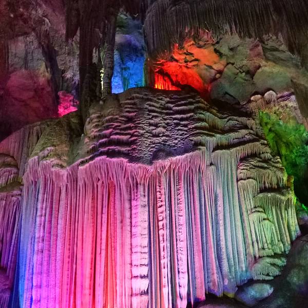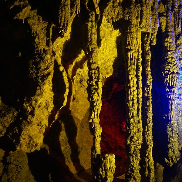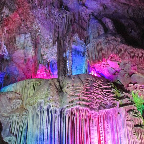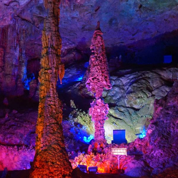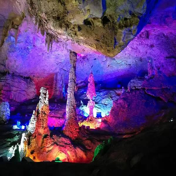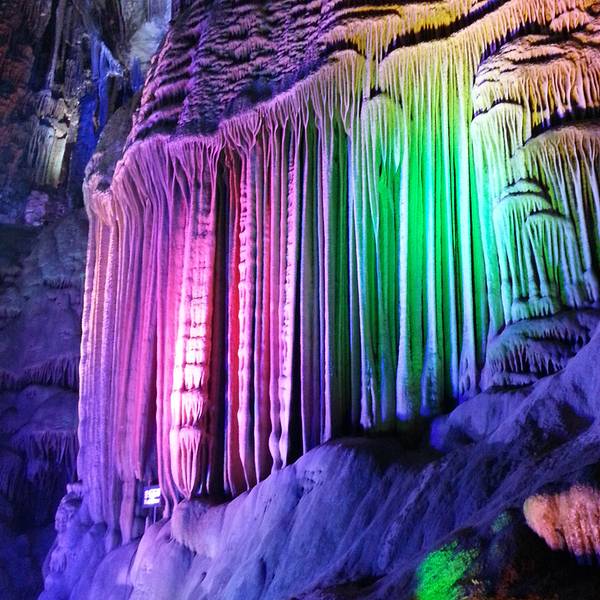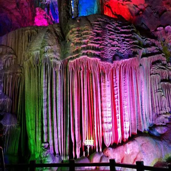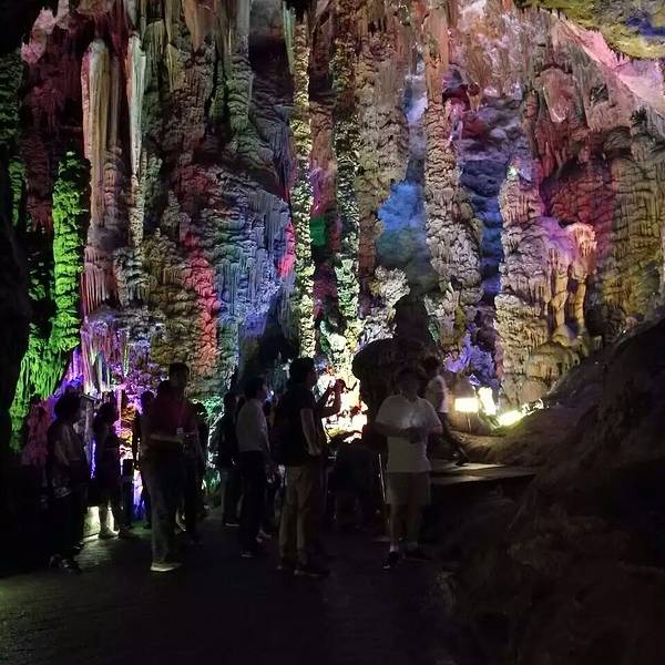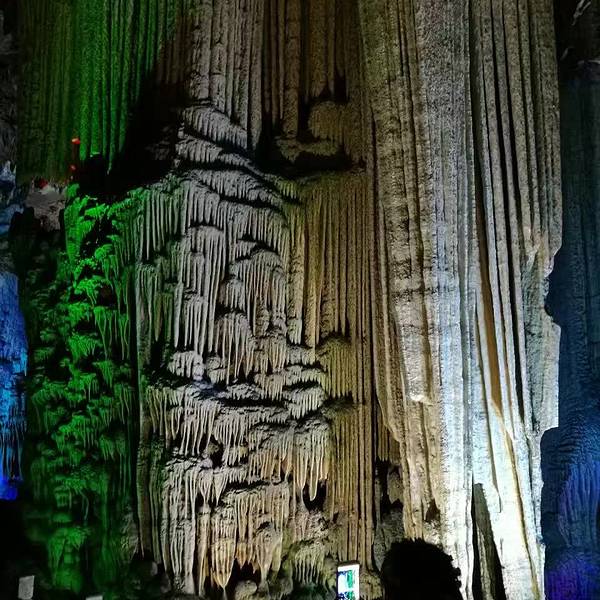 这个景点算是很值回票价的(对于从来没见过溶洞的人来说)银子岩是个天然溶洞,从地质学上说,里面溶石的历史超过60万年。洞内特色景点数十处,有荔浦芋王、孔雀迎宾、南国冰城、华清池、金钥匙、佛祖论经、音乐石屏、万里长城、广寒深宫、水镜倒影、金盆雪松、雪山飞瀑...银子岩是个天然溶洞,从地质学上说,里面溶石的历史超过60万年。洞内特色景点数十处,有荔浦芋王、孔雀迎宾、南国冰城、华清池、金钥匙、佛祖论经、音乐石屏、万里长城、广寒深宫、水镜倒影、金盆雪松、雪山飞瀑、独柱擎天、险峻天桥、神奇双柱、混元珍珠伞、四世同堂、百米画廊、音乐宫、壮锦生辉、冰淇淋、艺术长廊、万年灵芝、森林公园、母爱、伊园传奇、雄狮送客。其中最为著名的景观有三宝:佛祖论经、混元珍珠伞、独柱擎天;三绝:雪山飞瀑、音乐石屏、瑶池仙境。大自然的鬼斧神工在这里被展示得淋漓尽致,故被誉为“世界溶洞奇观”。