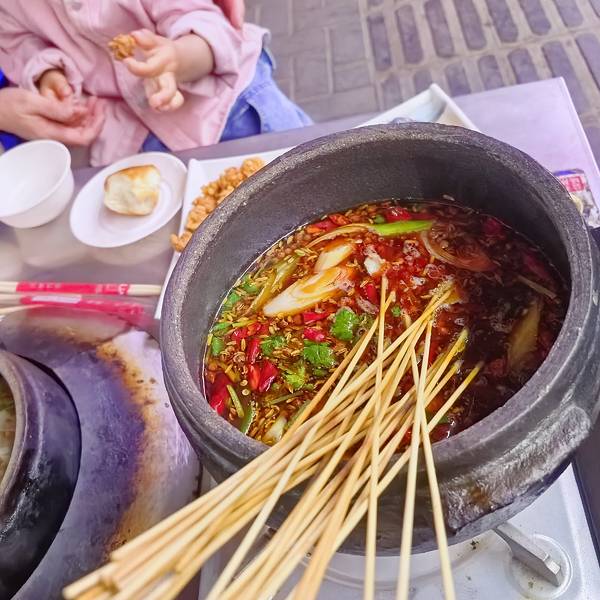 下来后直奔附近的明何记涻牛肚,麻辣锅底滋味醇厚,牛肚鲜嫩弹牙,再配上特调麻酱,香得让人停不下来。十字街夜市的不翻汤、牡丹鲜花饼等地道小吃也不容错过。