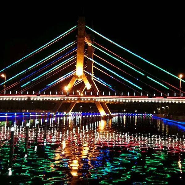 友谊桥是进入克拉玛依市的门户,桥主体魏斜拉桥,风格独特,美观精巧。全桥采用高杆灯及彩球射灯照明,塔柱安装霓虹软管装饰灯,斜拉索安设跑灯带,成为克拉玛依河上一重要的景点。其余四座交通桥为准葛尔桥,昆仑桥,胜利桥,和西环桥。15座人行桥和非机动桥分布在不同的河段。