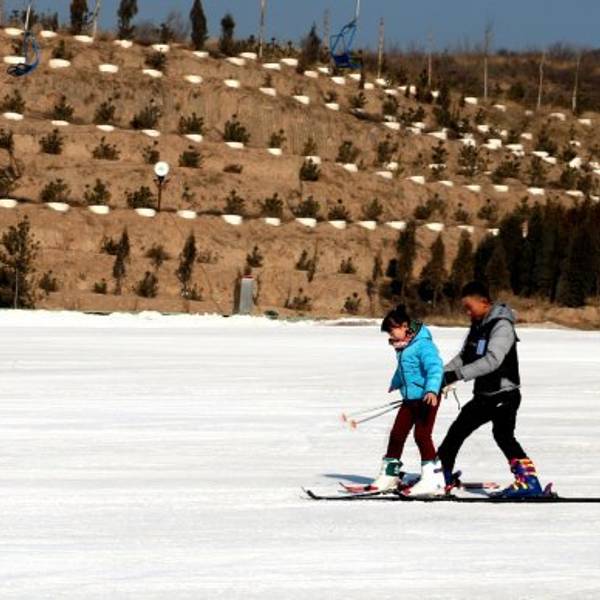 此处叫九龙滑雪场,位于太原城东南方向,靠近武宿国际机场。紧靠旁边的还有一个五龙滑雪场女儿在滑雪,无视教练的权威,打起了雪仗。
