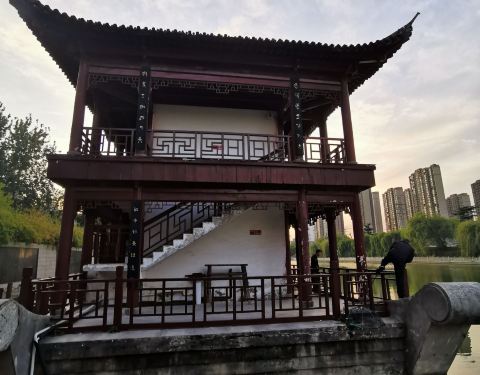 古黄河道旁边,伟伟矗立一座精致的古香古色的黄楼,夕阳照在她的身上,闪闪发光。不收门票古黄河道旁边,伟伟矗立一座精致的古香古色的黄楼,夕阳照在她的身上,闪闪发光。这就是苏东坡当年带领徐州百姓抗洪救灾胜利的纪念。不收门票。来了就受益。