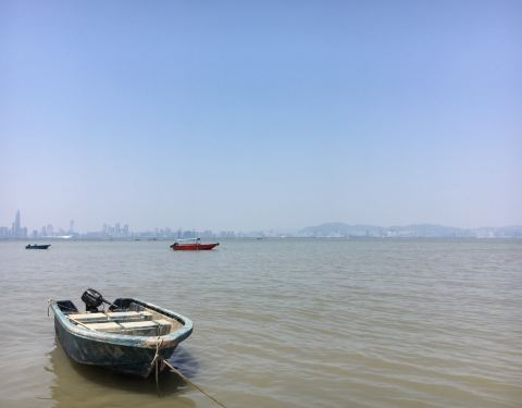 一直都听说香港的流浮山是吃海鲜的圣地,那里的蚝特别出名。这里的海水和天都非常蓝,景色非常美