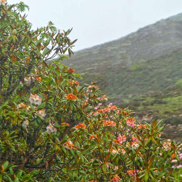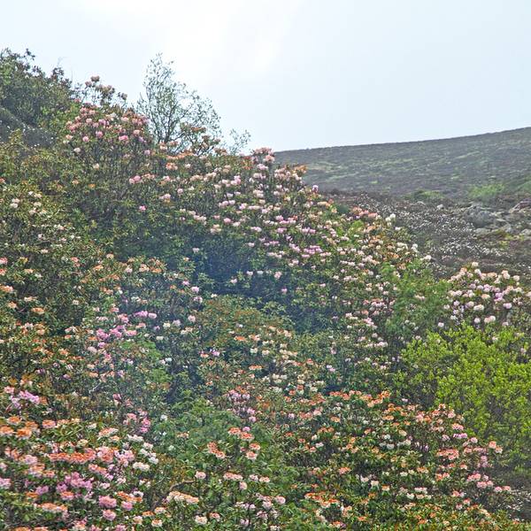 我们来到的季节(7月初)杜鹃花已经进入衰败期,但是有一些杜鹃花依然盛开怒放。车速极快,距离又很近,刚刚举起相机,就错过了拍摄的时机,裁剪几幅勉强看的清晰的照片。 展开