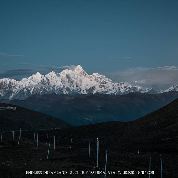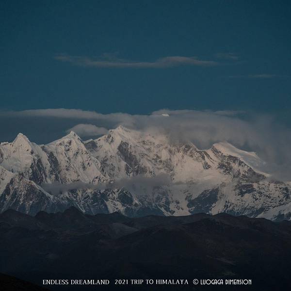 绝望,这仿佛回到了今年2月份在梅里的时候,前几天大家都看见梅里了,就我到的时候没了……那么南迦巴瓦会像梅里一样到最后一刻亮相吗,让我们拭目以待吧……我最擅长的,就是枯坐。日落时分,南迦巴瓦依然没有出来,但我再一次看到了希望,乌云已经被吹散了,说明有风!夕阳的金黄色已经褪去,对面的云层还在一点点一点点的挪动着。在天快黑还没有完全黑的时候,南迦巴瓦终于出来了!