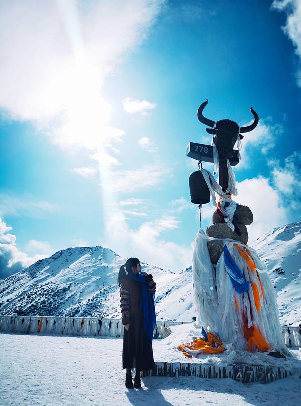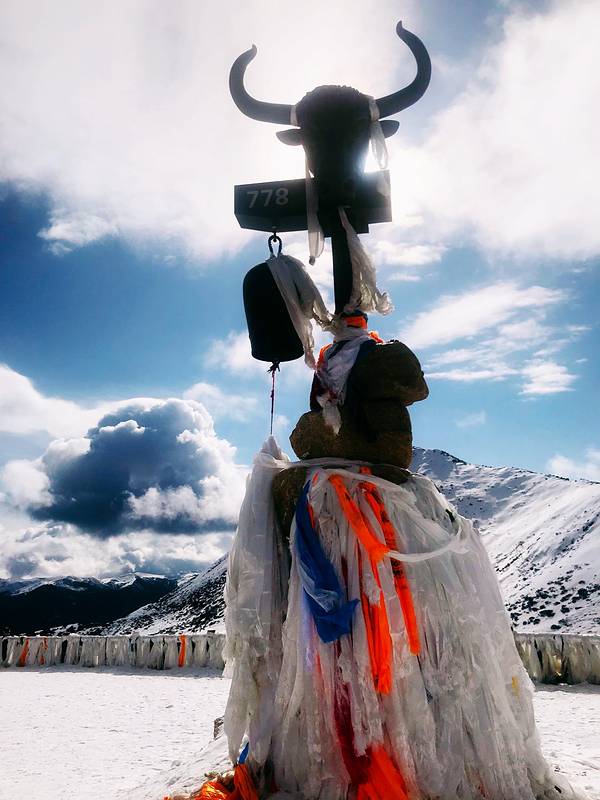金骆驼 色季拉山山口海拔4728米,视野开阔,可以远眺壮丽的南迦巴瓦峰。高山白雪皑皑,天空中漂浮的云团遮住了#点评召集令#
