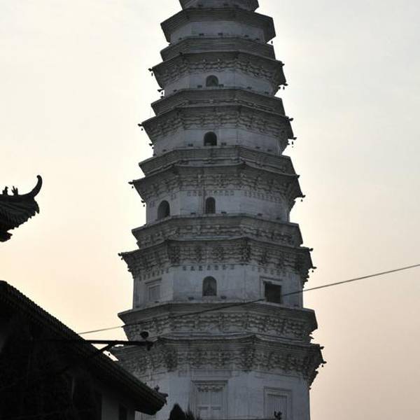 在山西太谷县城内西南隅普慈寺内。寺址原为白塔村,北齐时徙县址于此。寺创于晋泰始八年(公元272年),原名无边寺,北宋治平年间重修,改额“普慈寺”。北宋元佑五年(1090年)续修,寺中并建塔,高耸凌空,顶有尊胜石幢,垩久而白色不减,俗称白塔。元明清各代屡经修补,光绪三十二年再次修复,称“无边寺”。寺内殿阁共90余间(处),占地3960平方米,现除白塔为宋代遗物外,其他如乐楼、大殿、厢房、配殿、藏经阁等,雕刻华丽,彩绘鲜艳,皆为清代建筑。塔平面八角形,七层,高43.6米,每层有出檐及平座,檐座之下皆有斗拱,各层拱券门洞与檐外相通,并雕有假门窗。塔内底层为小形方室,有磴道可上,二层以上中空,安有楼板及木梯,供人登临。最上一层的出檐与平台间筑莲瓣三层,塔顶为宝瓶式塔刹。此制是唐塔中空到宋塔实心的一种过渡形式。56个出檐挑角装饰彩釉龙头,顶悬铁铃,风吹叮当有声。塔身白色,外观楼阁式,气势壮观,瑰丽精致,数十里外可见。该寺至今已有1700多年历史,是山西省重点文物保护单位之一。
