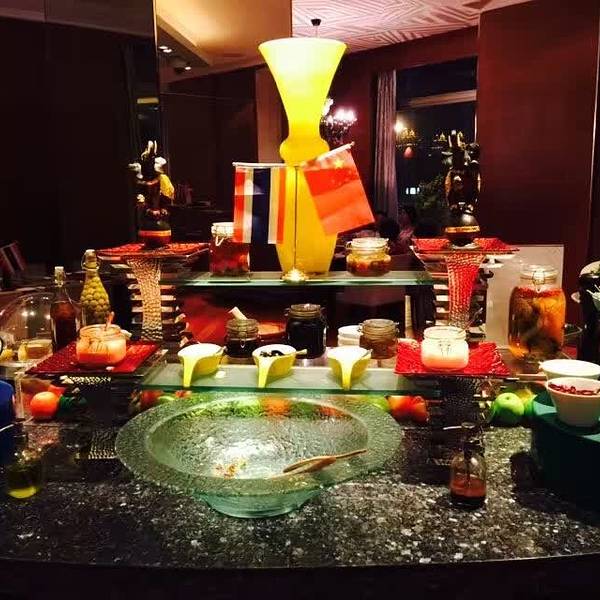 【印象】马哥孛罗酒店是一家国际五星级酒店,业主是香港的九龙仓,也是武汉汉口江滩最奢华的五星级酒店,咖啡厅位于酒店2楼,自助餐分为午餐和晚餐时段,晚餐当然更加丰富一些。而且每隔一段时间他们家就会推出各种主题美食节,这样不用出国就能品尝到正宗的异域风情佳肴,像这次我们去的时候正好在做泰国美食节。 【环境】自助餐厅已经布置成了泰国的主题,到处插着中国和泰国的国旗。马哥孛罗酒店一直是武汉汉口江滩地理位置和风景最好的国际五星级酒店,2楼的自助餐厅也非常有名,我们最喜欢坐在靠窗的座位,欣赏汉口的夜景。Tips: 1、交通:酒店位于汉口江滩兰陵路车站附近,有10几条公交客运直达,非常方便。地铁2号线到江汉路下走过来一刻钟。 2、停车:酒店有免费停车场。 3、wifi:可以链接餐厅的免费wifi,网速不错。 4、优惠:原价258左右,团购价只要200不到。 5、儿童:餐厅有儿童游乐设施,吃完了自助可以带宝宝游乐园玩。 6、预定:餐厅一般不需要预定,如果想看江边风景的座位需要预订保留。