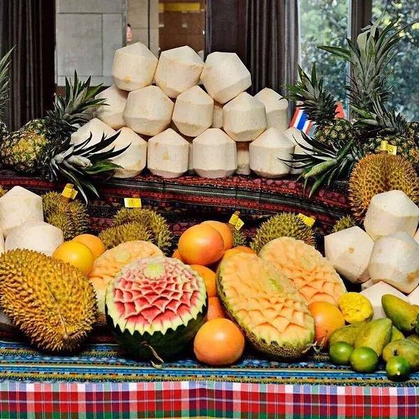 【菜品】泰国美食节将很多新鲜的食材水果都展示在了餐台了,一看就充满了诱惑,有我最喜欢的榴莲、菠...