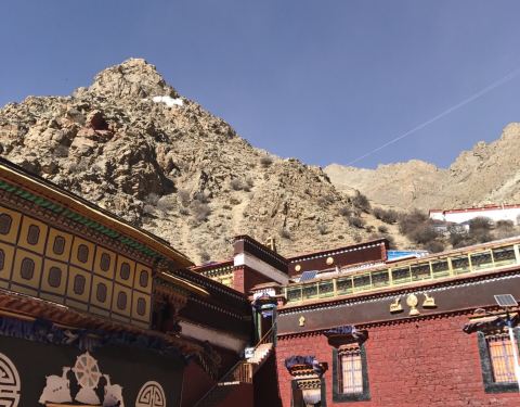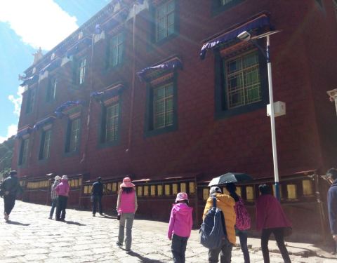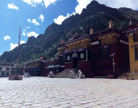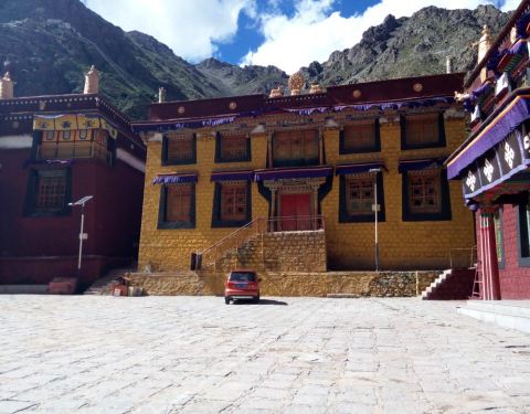 但道路非常好走,没想到寺庙如此富丽堂皇,色彩鲜艳、耀眼,红黄白黑色对比反差极大,寺庙门票这个季...地处四千多海拔的山坡上,但道路非常好走,没想到寺庙如此富丽堂皇,色彩鲜艳、耀眼,红黄白黑色对比反差极大,寺庙门票这个季节没人五十元