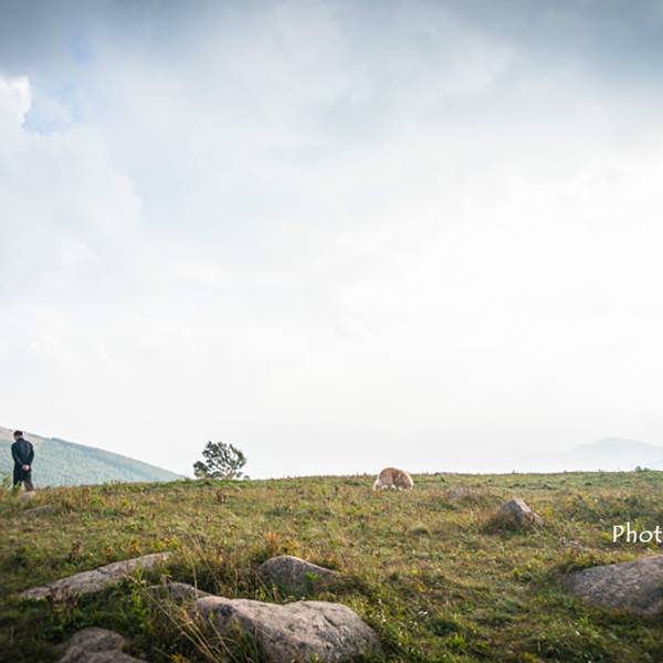 男孩拿着一把野花,单膝下跪像女孩说着求婚的誓词,从女孩的表情上能看出她很惊讶,开心却又很害羞,后来女孩慢慢的接过男孩手中的野花。这里真的很美,不管怎么拍都是大片,还有很多大哥哥大姐姐们都能玩出了新花样, 我只想默默的说一句你们城里人真会玩。海坨山海拔2000米,北京出发开车125公里,3小时到达,无门票。