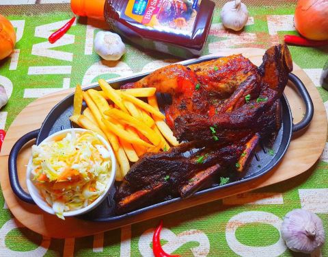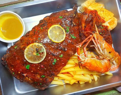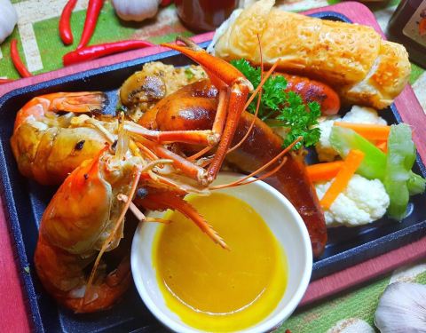 - 服务员很亲切,介绍餐厅里的各种美食,海鲜拼盘,烧烤肉类,配上西式蔬菜很美味