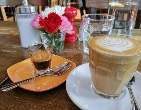 以出售自家烘焙的咖啡豆而闻名的咖啡厅,店内萦绕着咖啡的香气。全新烟熏三文鱼披萨,饼皮酥脆,夹着淡淡烟熏味十分诱人。饭后品尝一杯香醇的拿铁,搭配蓬松的柠檬蛋白派,幸福感油然而生。
