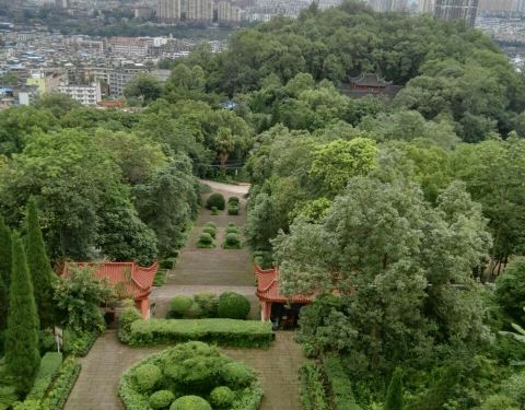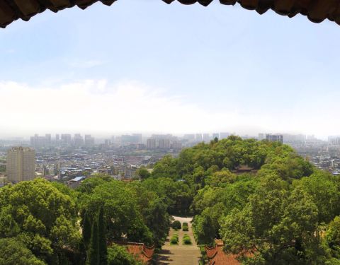 山上古迹众多,在山顶可观赏田园风光和城市风景。