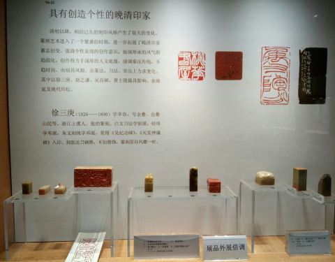 去孤山看梅花,居然发现中山公园入口处有家“中国印学博物馆”,用的是杜月笙在杭州的故居,二层小洋楼建筑。一楼陈列了各个朝代的官印和私印,文字和实物配比描述了印章的出现、发展的历史变迁;二楼是一些近代和现代的精品印章。博物馆是免费参观,周一闭馆,游客不多,适合印学爱好者静静地游览参观学习。