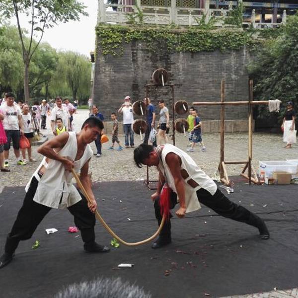 央视《水浒传》的拍摄地,与剧中场景合影,看《铁血丹心》表演。