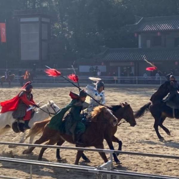 看了三英战吕布很震...在去哪儿网定的这个一日游,感觉特别满意,早上从集合开始 时间安排的很合理 紧凑,大巴车很舒适宽敞,本来看景区写的是小孩1.3~1.5半票的 结果跟团是1.4米以下的免票而且是确保有一个座位,