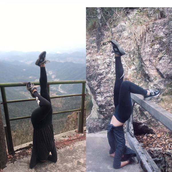 我喜欢她到每个不同的地方都倒立