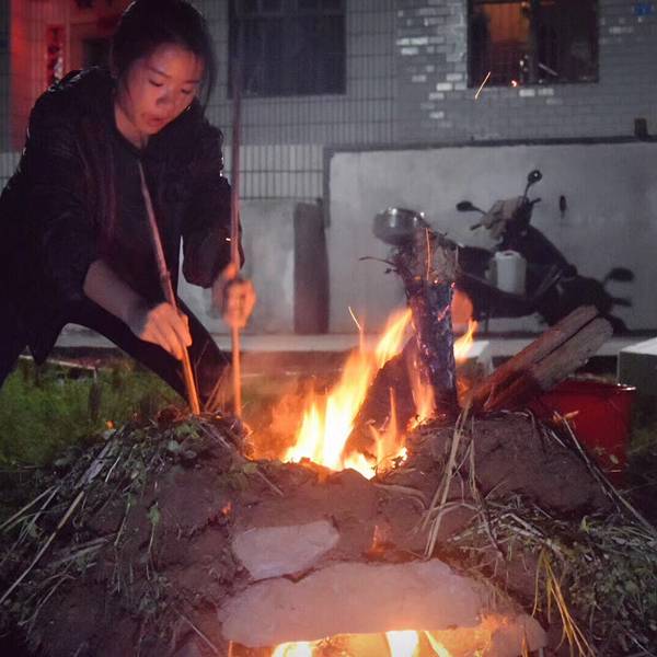 没眼看哈哈哈哈哈熊熊烈火燃烧不了我烧了两担柴看着这画面就想笑鸡是价值128元的走地鸡