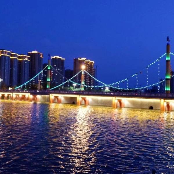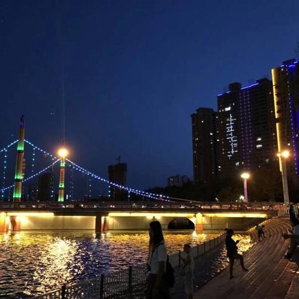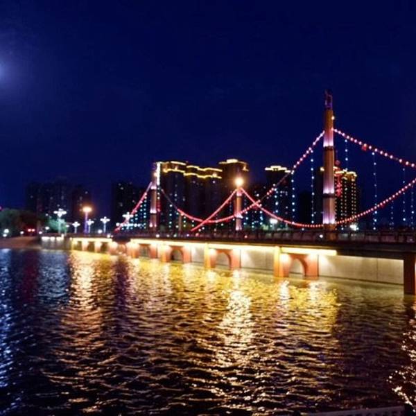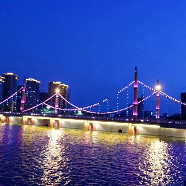 这次有幸参观了库尔勒市的孔雀河夜景。我们晚上住在库尔勒市。离孔雀河大概有个500米。孔雀河旅游带分为四个公园,六座桥梁。住在了建设桥。因而有一个叫如家的宾馆。房间价格不贵。是一个去看孔雀河的绝好的住处。你想离孔雀河夜景近一点的话,建议选择住如家。其实库尔勒有很多著名的景点,例如罗布人村寨,胡杨林,金沙滩,博斯腾湖。有机会希望你也来一场说走就走的旅行。至少之前要做一下攻略。要不然到了当地以后,就有点摸不着头脑了。