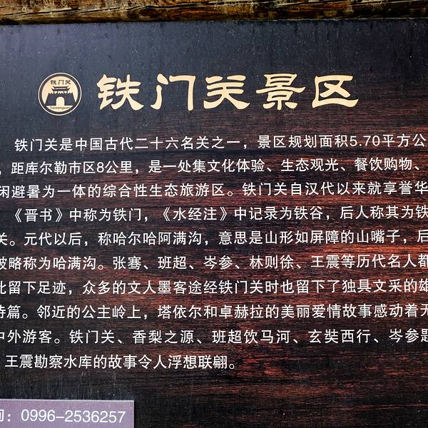 唐代著名边塞诗人岑参登铁门关楼曾赋诗一首《题铁关楼》:铁关天西涯,极目少行客……位于库尔勒市北8公里怪石峥嵘的库鲁克塔格山中,因其地处险要,故取名铁门关,在天山支脉库鲁克塔格山与霍拉山的犬牙交错中。两千多年前的丝绸之路,就从这里沿孔雀河进入一条30公里长的峡谷走过,峡谷曲折幽深,...位于库尔勒市北8公里怪石峥嵘的库鲁克塔格山中,因其地处险要,故取名铁门关,在天山支脉库鲁克塔格山与霍拉山的犬牙交错中。两千多年前的丝绸之路,就从这里沿孔雀河进入一条30公里长的峡谷走过,峡谷曲折幽深,岸壁如刀劈斧凿,据考从晋代起,这里就设立了关口,因其地处险要,故名铁门关。 展开