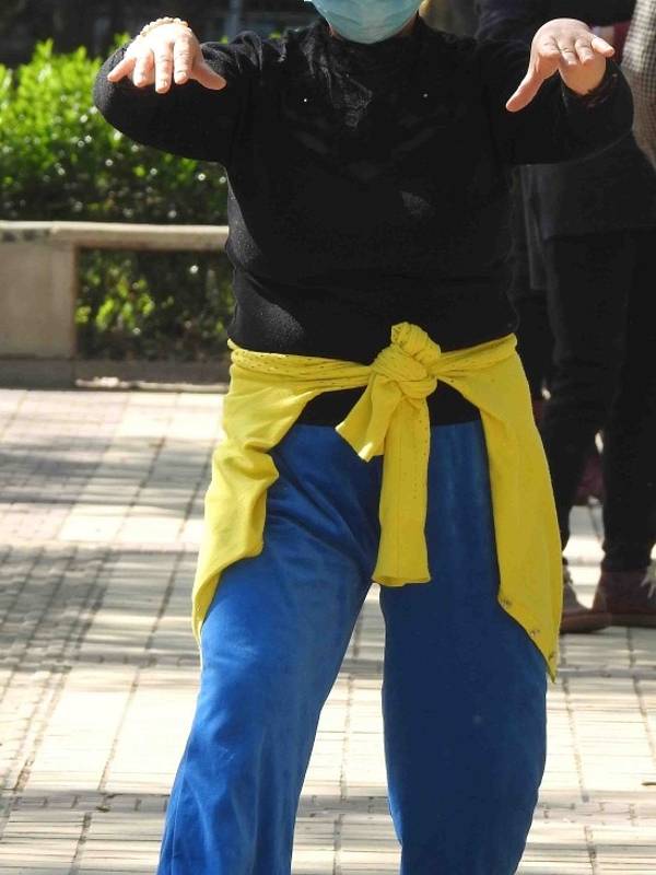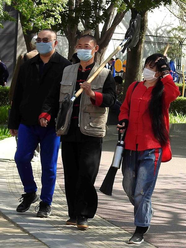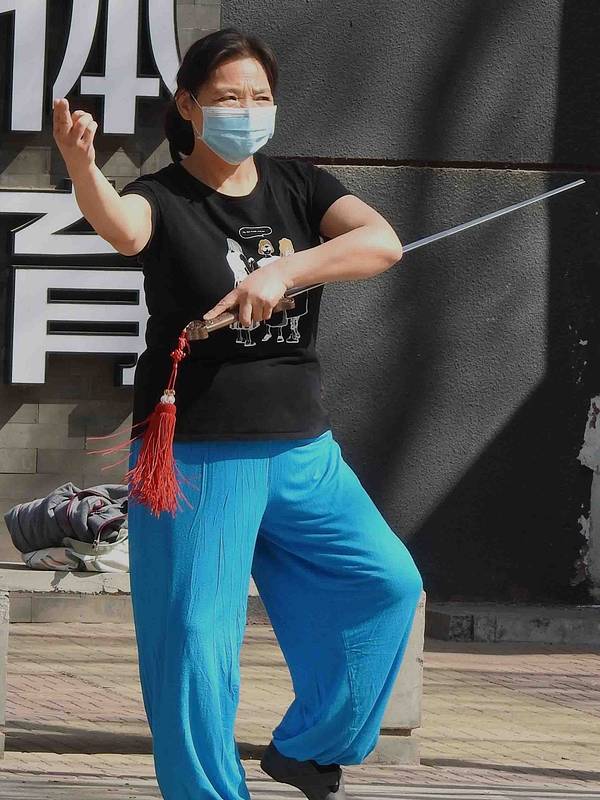 北京的各大街边公园、广场,渐渐恢复了生机。不少市民开始外出健身,大爷大妈们拿着趁手的“兵器”,各“门派”身手不凡。