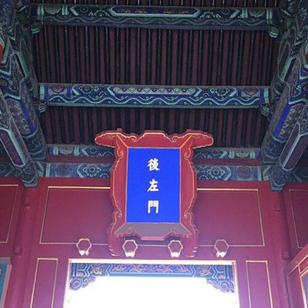 殿东向,阔九间,两侧有南北配殿,前有仁寿门,门外为南北九卿房。——仁寿殿