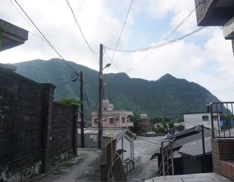各种摆设标语把我们带到了一个活生生的采矿现场。出发采金子去落这个电话表情很可爱。四连栋是一处相通的四户一栋的日式宿舍,很多日韩的美眉喜欢在门口拍照,我们也来凑个热闹。金瓜石到九份只有一山之隔,绕过一段山路司机在方便停车的地方让我们拍拍美景。谁会知道美景的背后又是一片“夜总会” 展开