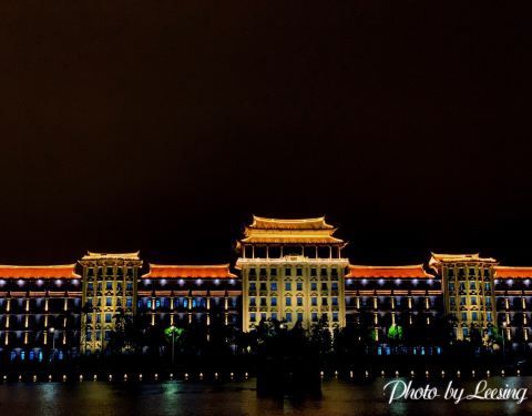 厦门集美的龙舟池夜景 龙舟池也算一个不错的旅游景点了,时常会遇到旅行团经过。不过龙舟池的最佳观赏时问是在晚上。灯光映照建筑美,黑夜也挡住了池里的污浊。也超适合拍文艺范的照片!放图