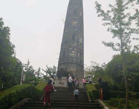 松江天马山公园里的护珠塔,有近1000年历史了,有碑记录了建塔的过程和塔被毁倾斜的过程