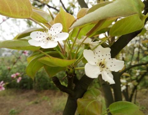 有梨花桃花,还可以去摘桃子梨子枇杷。