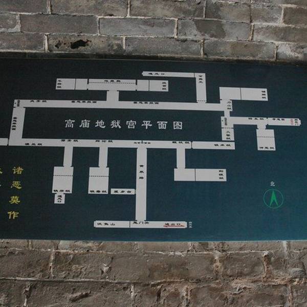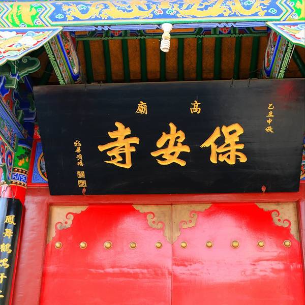 保安寺位于高庙前,山门朝南,两侧建有厢房,正面为单檐歇山顶的大雄宝殿。殿后为高庙,有24级台阶,拾级而上,经牌坊、南天门、中楼,最后是高达三层的五岳、玉皇、圣母殿。这些主要建筑,都在一条中轴线上,它们层层相因,逐步增高,气势雄伟。在高庙主体建筑的两侧,还有钟楼、鼓楼、文楼、武楼、灵官殿,地藏殿等配殿。在仅2000余平方米的高台上,建造了近百间九脊歇山、四角攒尖、十字歇山、将军盔顶等各种类型的殿宇。整个建筑群重楼叠阁,檐牙相啄,迂回紧凑,出神入化,栩栩如生,为艺术奇葩,丛林一绝。十八层地狱,神呵鬼嚎,阴森恐怖,惊心动魄,发人深省,是全国四大古狱之一。