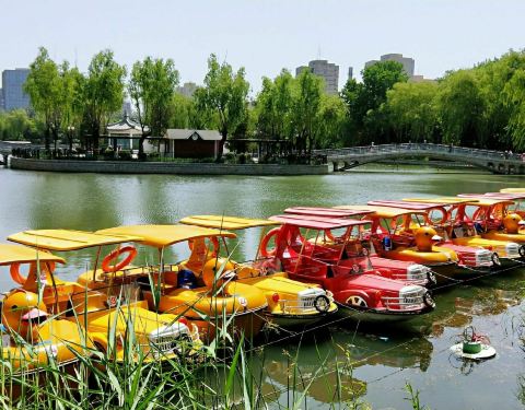 挺好的公园,免费,景色不错,还能划船,还有游乐场。离着近的带孩子来特别合适。春天也有很多花挺好的公园,免费,景色不错,还能划船,还有游乐场。离着近的带孩子来特别合适。夏天还有水上乐园,很多人。冬天可玩的就不太多了。春天也有很多花。