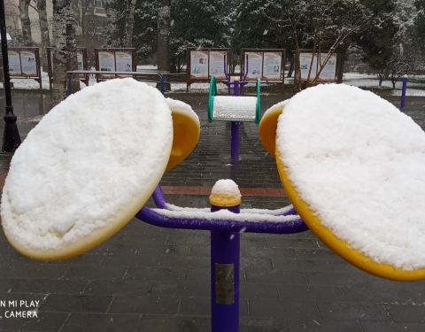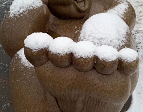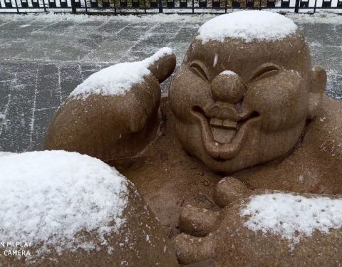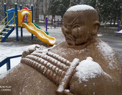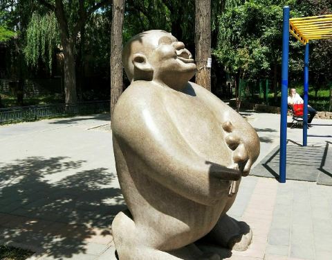 青年湖公园的这几组石头人非常有意思前几天北京的大雪覆盖北京城,雪中青年湖公园中的运动场好清静,沒有了平日的热闹,雪中只有几尊锻炼的石雕像在坚守。青年湖公园的这几组石头人非常有意思。