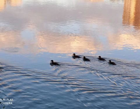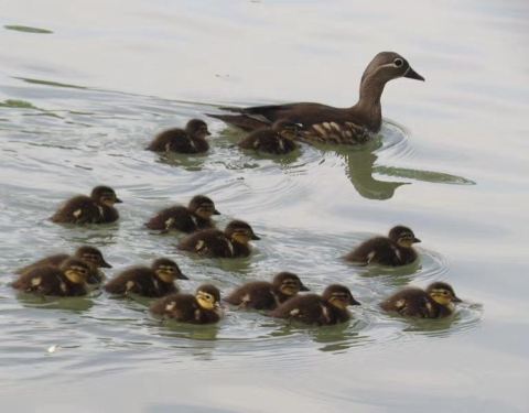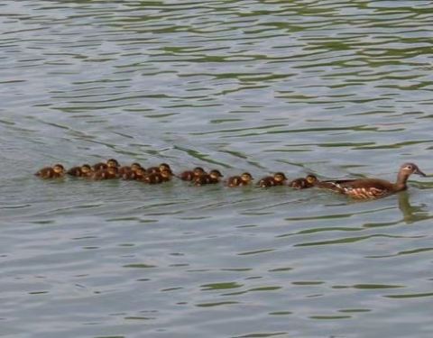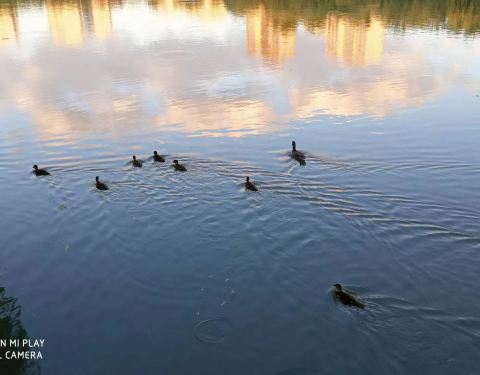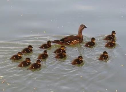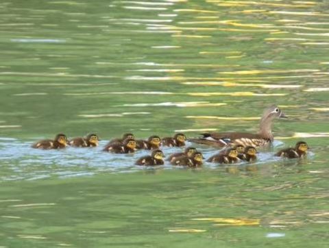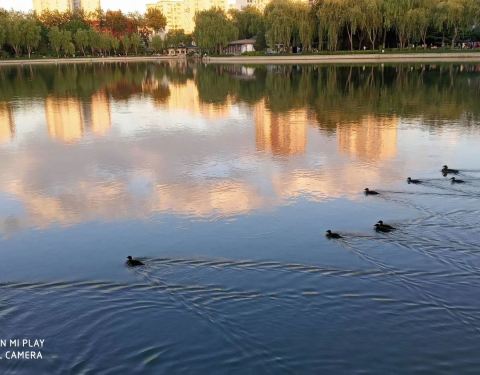 傍晚去青年湖公园遛弯,偶遇鸳鸯一家,很显然鸳鸯一家人口壮大了,之前只是几只,现在是成排了,北京...傍晚去青年湖公园遛弯,偶遇鸳鸯一家,很显然鸳鸯一家人口壮大了,之前只是几只,现在是成排了,北京的蓝天越来越多,小动物也是越来越多。