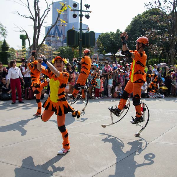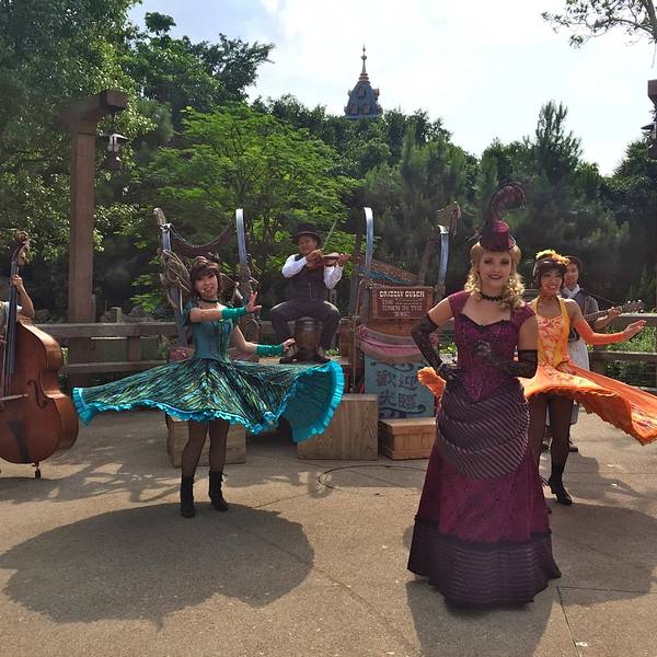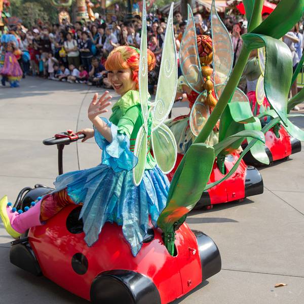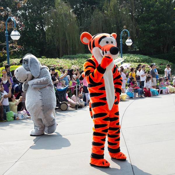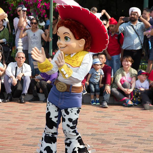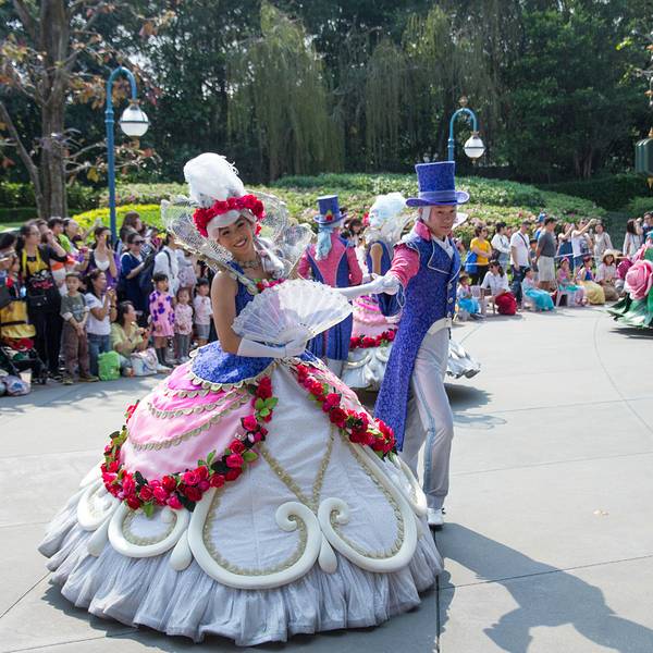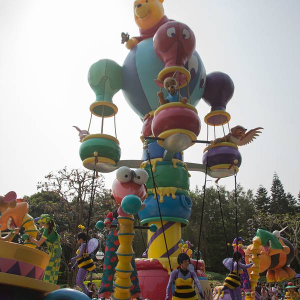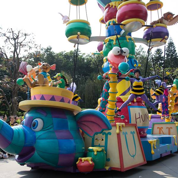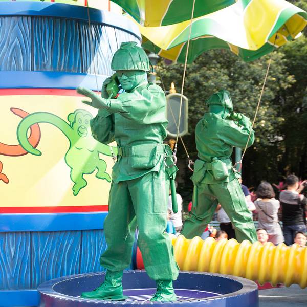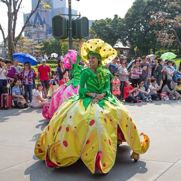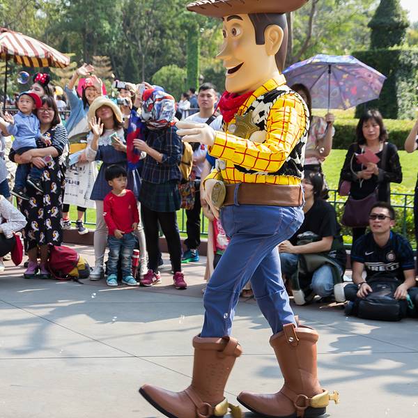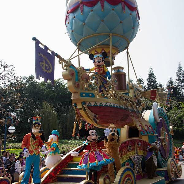 游玩感受:入园后旁边可以拿演出时间表跟乐园地图,中文跟英文的都有。虽然不是节假日,人还是挺多的,除了相对比较刺激的灰熊矿车跟伞兵降落以外,其他的基本都玩了一遍。比较喜欢的是米奇金像奖,米奇幻想剧,飞天巡游。我们去的那天温度在30度左右,飞天巡游的工作人员穿的很厚,个个满头大汗,但仍是满脸笑容,热情的表演,佩服!