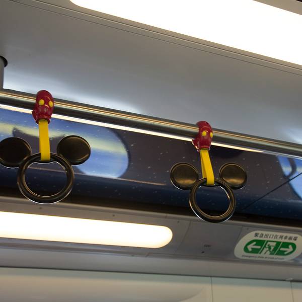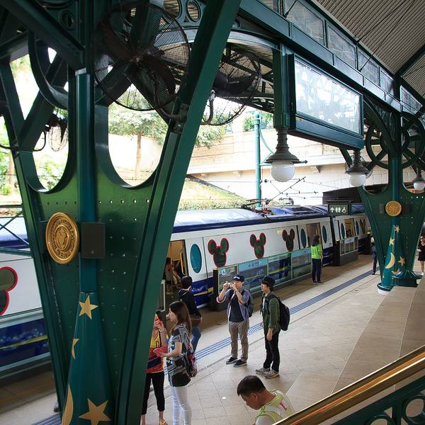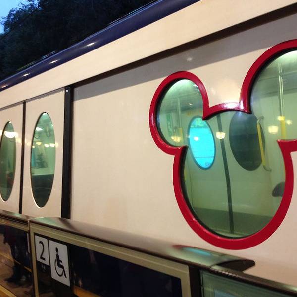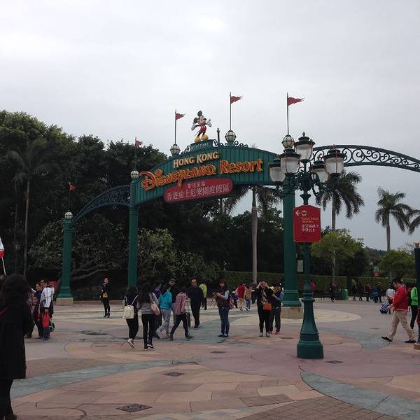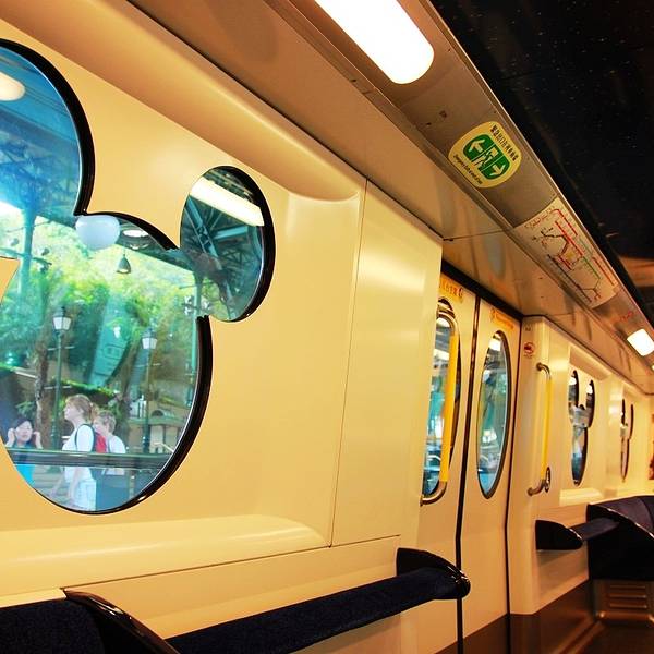 迪士尼的门...香港迪士尼乐园,乘坐东涌线(东涌方向),在欣澳站下车换乘,再乘坐迪士尼专线前往。迪士尼专线的车特别可爱,窗户和车内环境都是根据迪士尼的人物设计的~下车出站就是迪士尼乐园啦~所以特别方便!