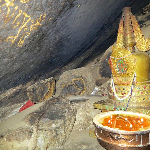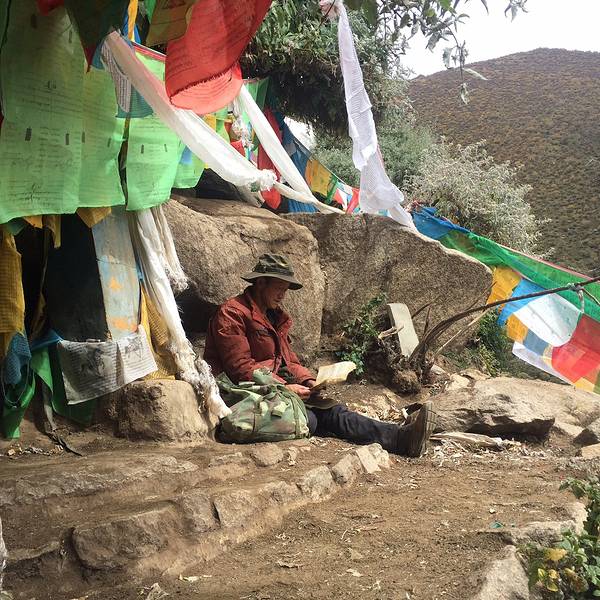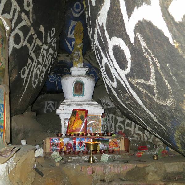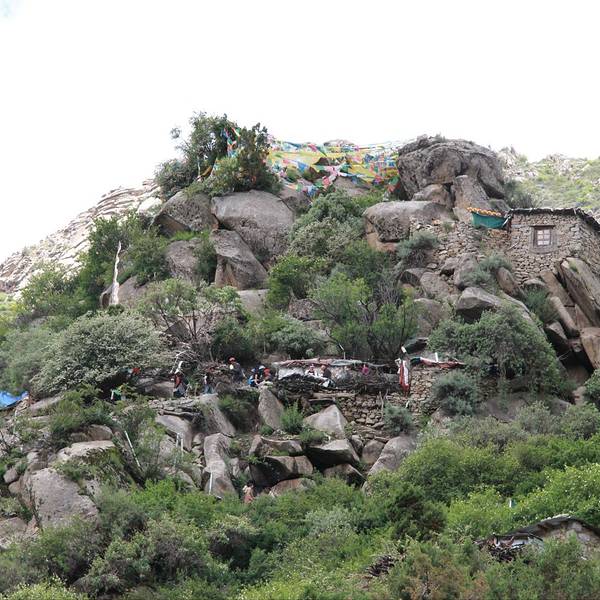 天还未亮,起程来到青...桑耶镇边上不远处,有一处神圣的青朴修行地,栖居着无数修行隐士,莲花生大师亦曾经在此修行,留下众多神迹。按照以前的说法,青朴有108个修行者的洞穴。如今,恐怕早就已经不止这个数了。