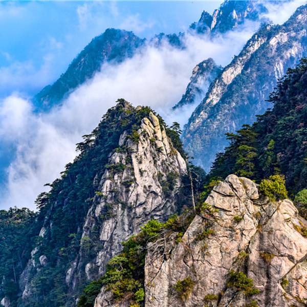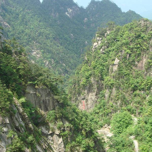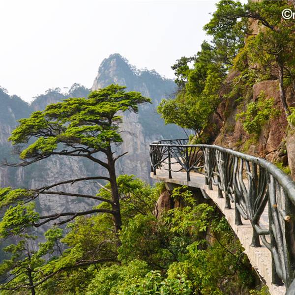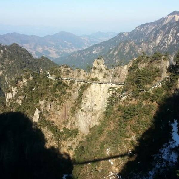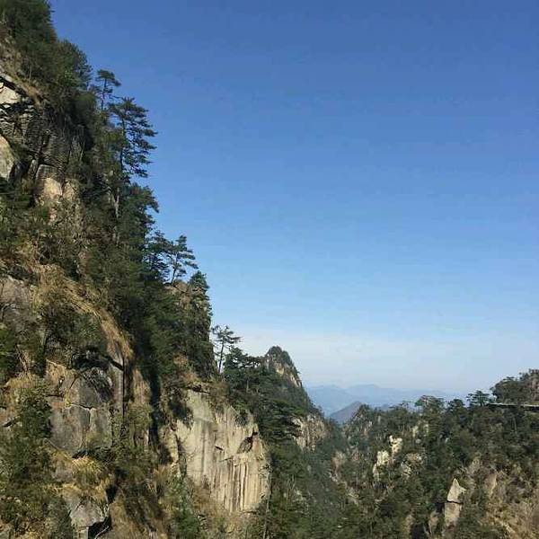 大明山号称是小黄山,山上的松树造型美观,一株株生长在悬崖上,称得上是玉树临风。悬空栈道是大明山的特色,有一米多宽,可以并行两人,好在有栏杆围住,向下看一眼也是胆战心惊。 展开