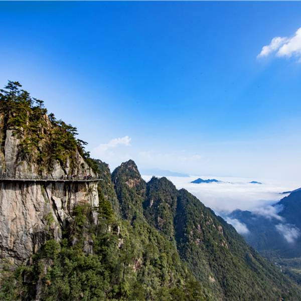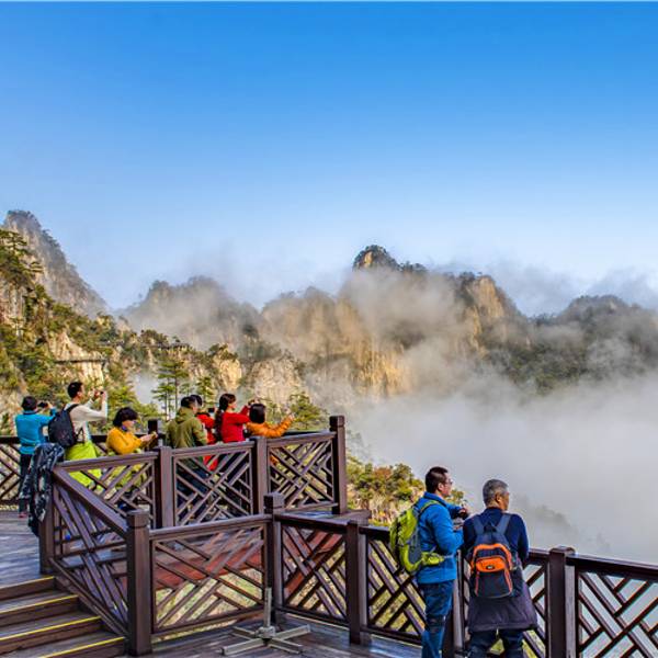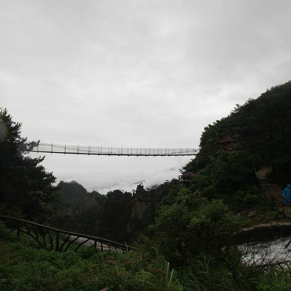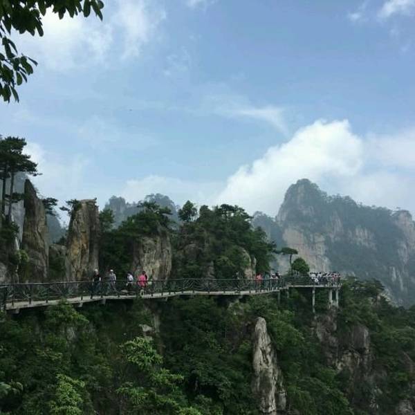 正好碰到某个活动促销价上海至大明山白水涧144元每人的特惠价包...两峰由一座索桥所连接,远处便是云雾缭绕的悬空栈道。我便是被大明山宣传美图所吸引,在众多周边游的项目中选中了大明山+白水涧的旅行团2天1晚游。