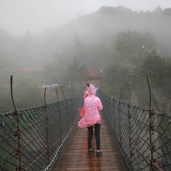 云雾缭绕,隐隐约约的美景区的护栏都是一样的设计,仿木色,涂上了防火漆由于下雨天,水量极度的充沛,瀑布显得更加壮观来这里的游客,还是希望注意自身安全,不要一窝蜂的都涌上桥。由于每个人的步伐不一致,桥面总是会晃动,需要注意安全。 展开