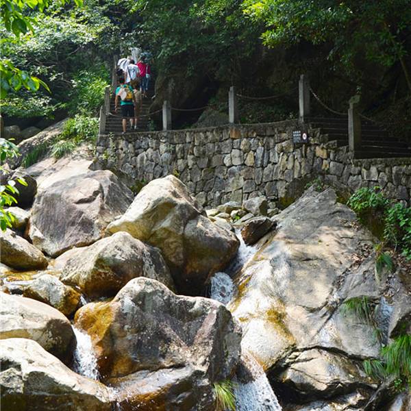 作为浙江和安徽边界附近的大明山,有着“小黄山”之称,所以上山也是个体力活儿,大致需要2小时左右。一路上有台阶,路还挺好走,有山有水。