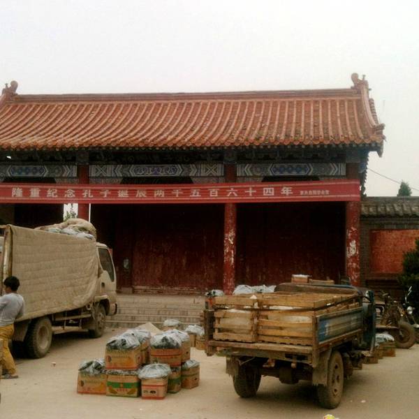 史籍记载,孔子的祖先是宋国人。西周初年,微子启封于宋。死后,其弟微仲继位。微仲死后,子宋公稽立。宋公稽死后,子丁公申立。丁公申死后,子泯(min)公共立。泯公共死后,弟炀公熙立。泯公共次子鲋祀杀炀公,欲立太子弗父何。弗父何不受,鲋祀自立为厉公。弗父何则为宋国上卿,受采邑于栗(即现在的商丘市夏邑县)。 弗父何在栗定居后,生宋父周。宋父周生世子胜,世子胜生正考父,王考父生孔父嘉。 孔父嘉为宋国大司马。它殇公十年(公元前710年)被太宰华督所杀。又三十年,宋国又爆发了一次内乱。孔父嘉之曾孙孔防叔避乱奔鲁。防叔生伯夏。伯夏生叔梁纥。叔梁纥生孔子。 因为夏邑是孔子的祖籍,孔子的先祖弗父何及以下六代宋父周、世子胜、正考父、孔父嘉、木金父、皋易均葬于此。 自1994年始,国际性的孔子祖籍文化学术研讨会已在夏邑召开三次,并成立了孔子祖籍文化学会。 夏邑县城北六公里王公楼村,有孔子的祖坟。孔子常回来祭祖省墓。后人为纪念孔子还乡,在此大兴土木,建起了还乡祠。 据考,还乡祠始建于唐初,多次被毁。其形制仿文庙,坐北向南。曾有一壁、四门、一坛、两庑、两殿、一厅和碑林。宋真宗时,孔子四十五代孙孔良铺、孔彦辅由由曲阜来此定居,对还乡祠修复扩建。金代,又立杏坛碑于大成殿之前。清道光元年,增建四代祠(崇圣祠)。 还乡祠由于年久失修,逐渐毁坏。现政府正按旧制逐步修复。