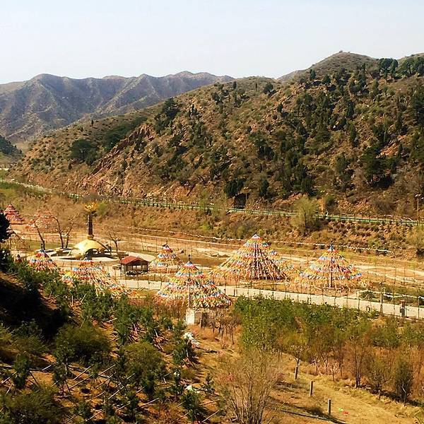 五当召在群山之上,快到五当召的时候就能看到各种经幡 在路边,在山上。降低车速,我慢慢的驶过,走了那么赶早开车去五当召,据说是四大藏传寺庙之一,一定要来的地方。