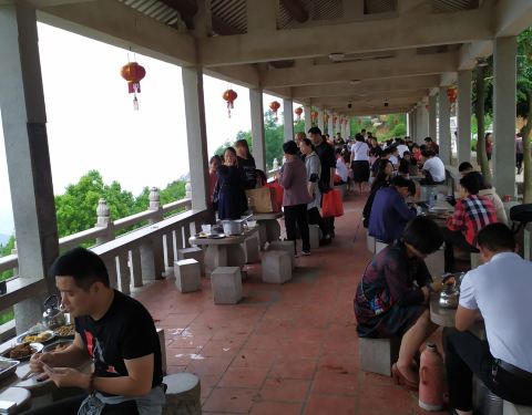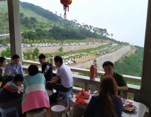 停车场爆满,可能是五一节期间,游客们很多,都是来这里喝茶聊天,寺院还在建设中,还没完工,最有特...