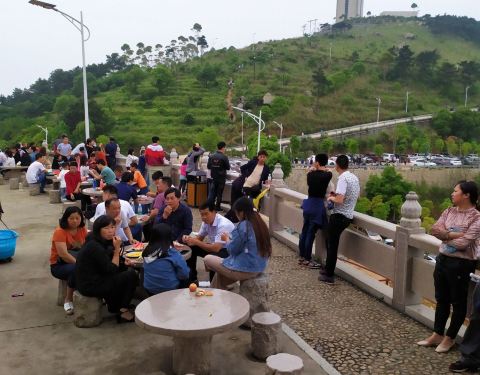 可以直接开车到山顶,爬山路锻炼的多,好风光主要在山顶,半山路上风景比较没有惊喜。山顶停车的地方,可以买水喝和吃东西,周边有寺庙建筑和一个气象塔。到这个停车的地方,一定要再爬上最高峰,只要十分钟多究到,上那里视野很开阔,可以看泉州晋江南安三地。