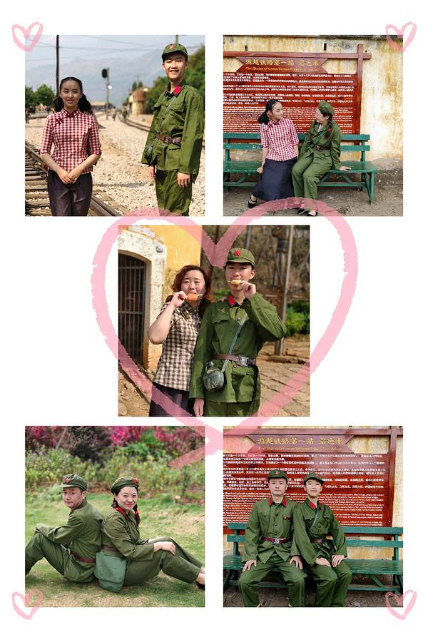 那是一列从1910年开来的火车,缓缓的驶入碧色寨,这个距离昆明两百公里外的火车站沸腾了,作为滇越铁路上中国国内唯一一个特等小站,那个叫碧色寨的小村庄,现在也如同它当初般平静安详。小站周围的建筑加起来,还是组成那个浪漫优美的名字——碧色寨,一个将作为历史和回忆,永远铭记在火车迷的心中。岁月静好,莫负芳华因为《芳华》,这里成为了革命的摇篮,到这里,不租一套军装,都会觉得不好意思革命老兵岁月静好,芳华永驻相亲相爱一家人认真生活,认真快乐