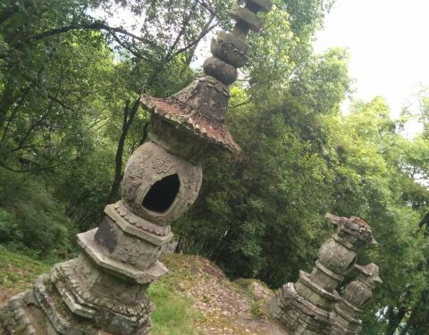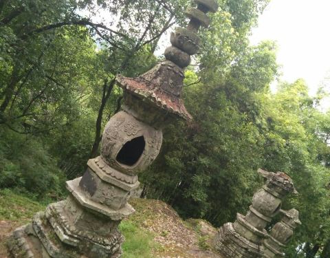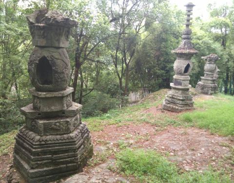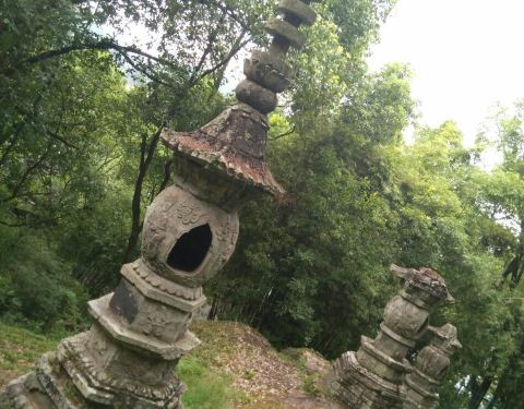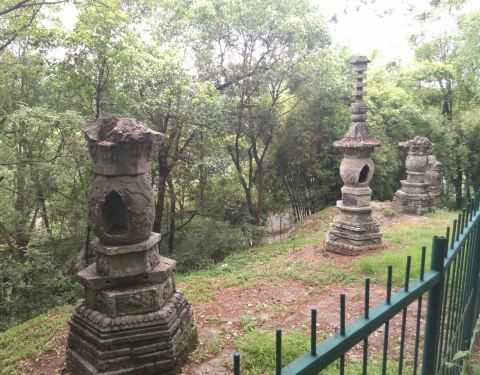 丽水灵鹫寺石塔位于万象山公园内的一条小路上,就在万象书院的上方,因灵鹫寺己毁,故将遗存的石塔移放在万象山公园内,共有四座一字排着,且尚有2座较完整。