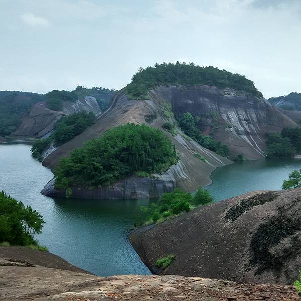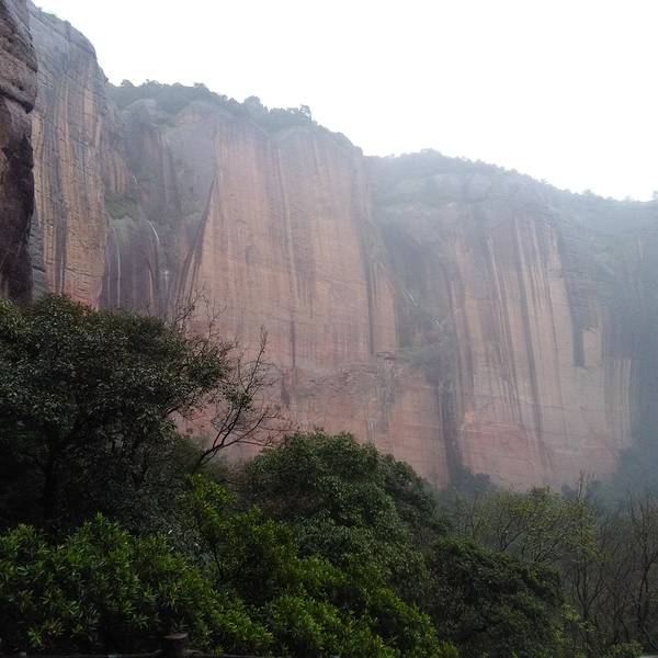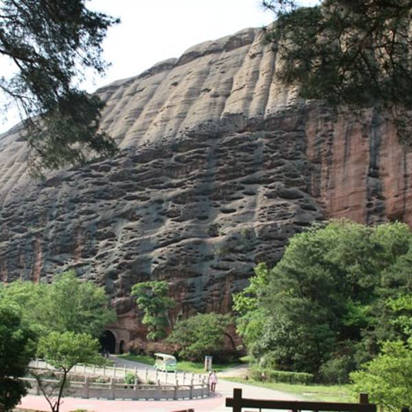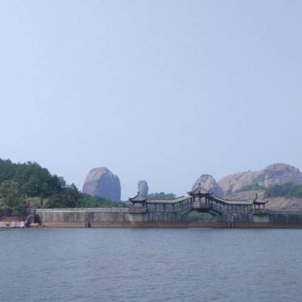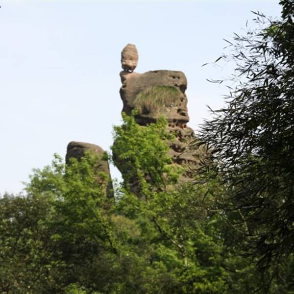 典型的丹霞地貌景观,乘船在清水湖上可览龟峰全貌,山色红艳异常迷人。