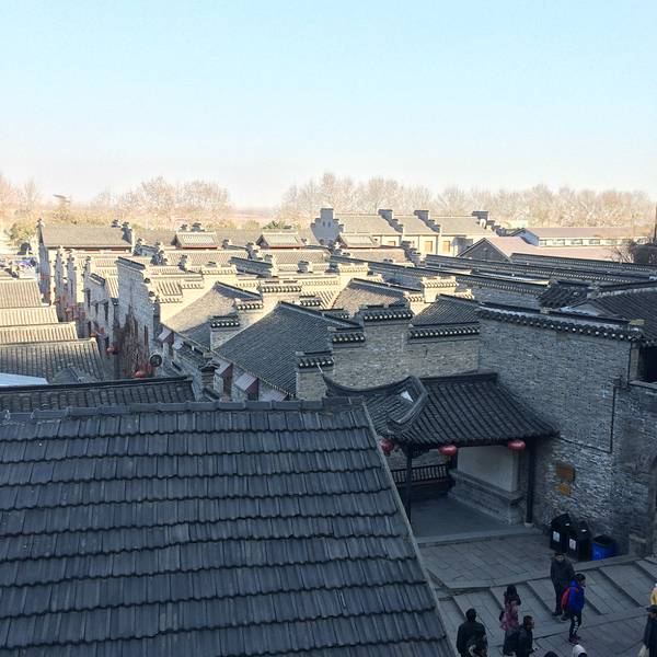 沿街顺着路标指示,有石板台阶可以到山顶上看全景,看着远处的古渡口与长江,眼下则是一片错落有致的灰建筑,古城还在在下面逛着感觉最好哈这一年天气非常非常好,在观景台的感觉是爬高了天更蓝了一层,晴空万里无云一片蓝。